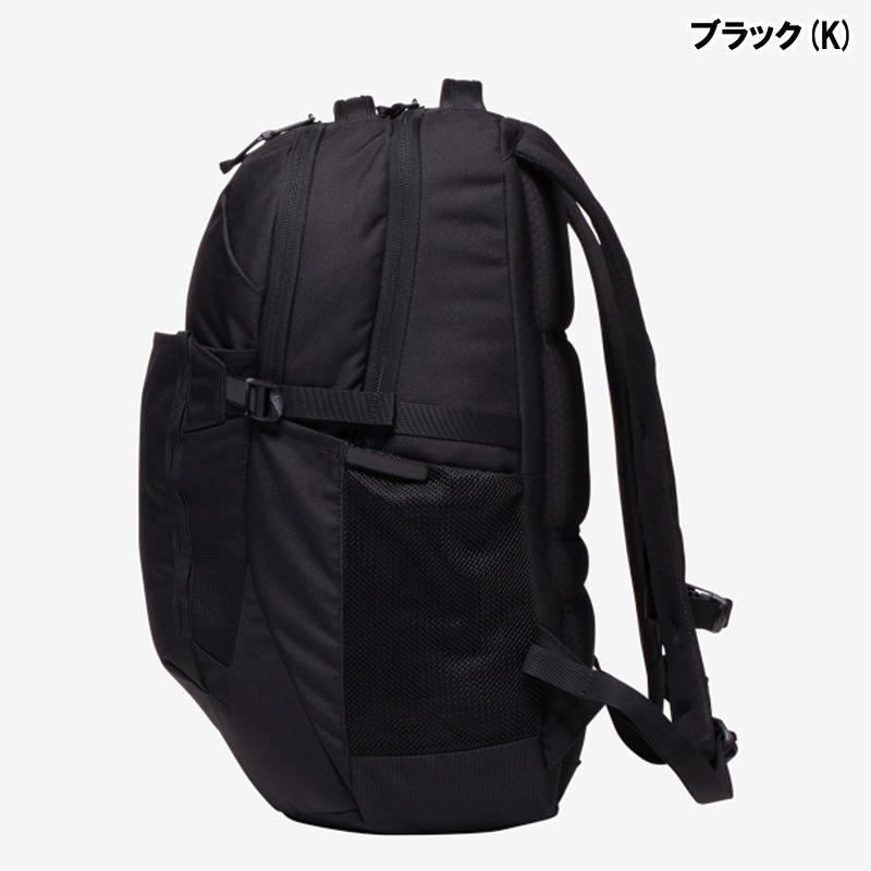 メイン素材には、必要十分な強度を持つ600Dのリサイクルポリエステル(K、SBカラーのみ)を一部使用し、バックルにもリサイクル材を採用。背面は、高い通気性とクッション性をもつフレックスベントサスペンションシステムで、快適な背負い心地を得られます。