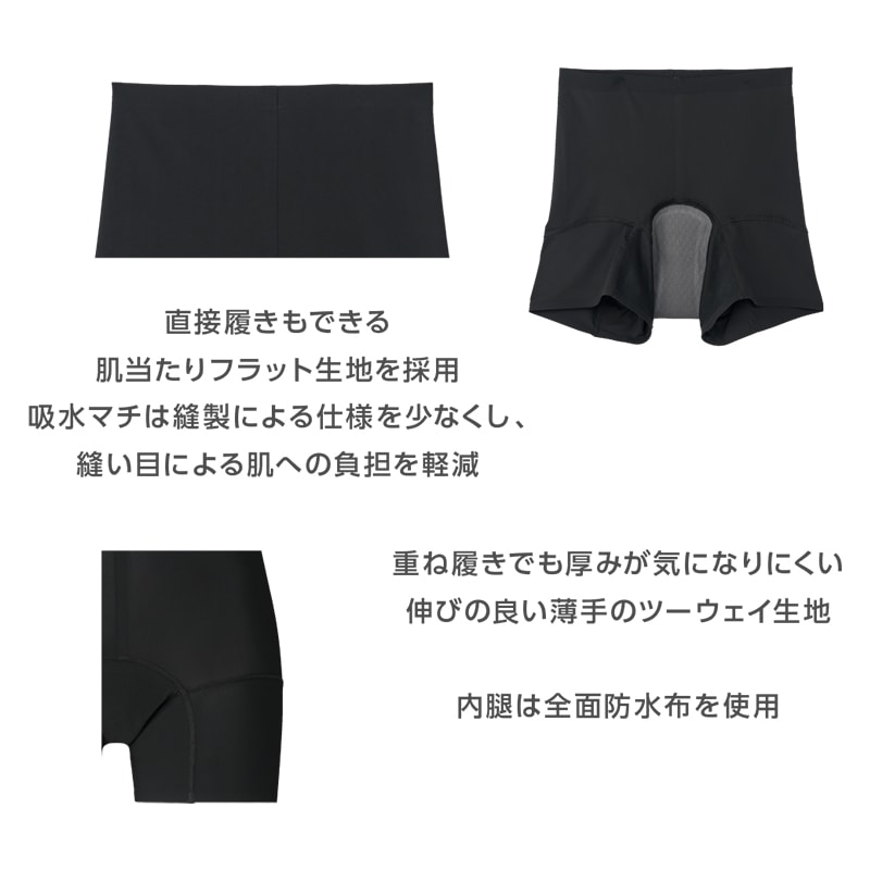 ☆モレ防止サポート:最大吸水量30ml。マチ周りを防水布で囲み染み出し・返りモレを防ぐ。