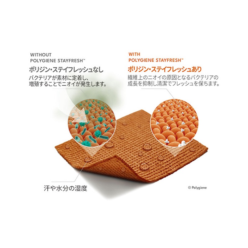 甲部分はメッシュで、通気性を高めています。銀イオンによるポリジン・ステイフレッシュ加工の抗菌防臭性を装備。