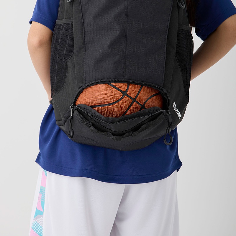 ボトムのファスナーを開けるとバスケットボール7号球を収納可能。