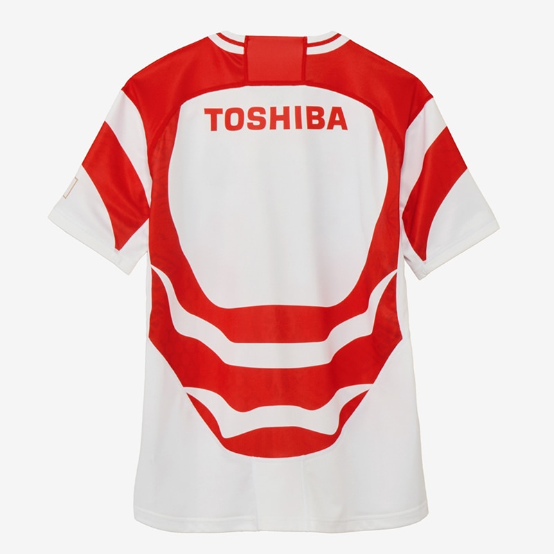 ラグビー男子日本代表レプリカジャージーです。日本代表の躍動感、力強さを表現するモチーフとして歌舞伎の隈取に着想を得て、デザインに取り入れました。