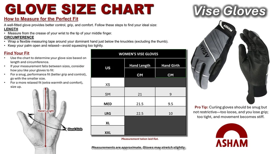 ASHAM アッシャム プログリップ ライングローブ ProGrip Lined Curling Gloves 手袋 (3507 3517)